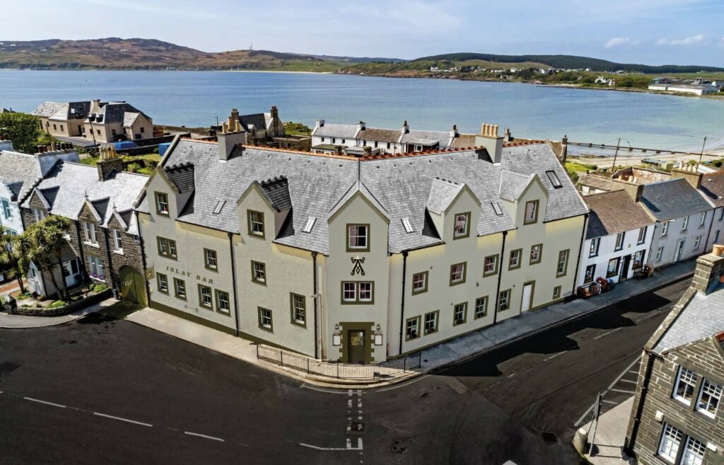 On the southern coast of Islay, Ardbeg House (formerly the Islay Hotel) in Port Ellen has undergone a meticulous restoration in preparation for its grand re-opening. Owned by the iconic Ardbeg Distillery and designed by Russell Sage Studio, the reimagined estate now includes twelve individually themed bedrooms, each reflecting the rich history and character of Islay, as well as a bar, courtyard, and restaurant.